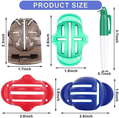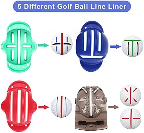【Value Golf Ball Alignment Kit】You will get 4 pieces golf ball line liners in different types, 4 pieces golf ball marker pens in diverse colors, including black, blue, red and green,1 clip and 1 silicone protector, nice combinations to meet your different needs for line drawing.