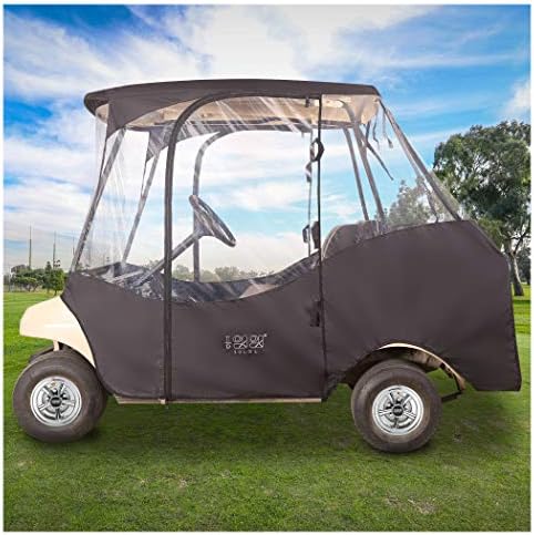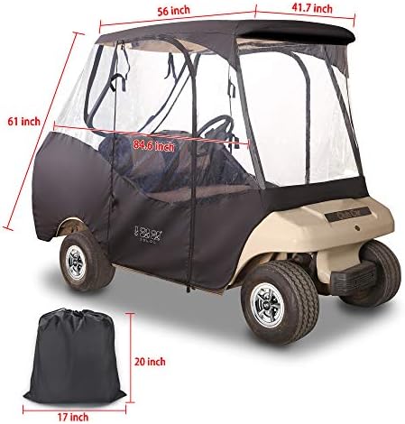 2 PASSENGER GOLF CART ENCLOSURES: Heavy duty water repellent polyester walls with clear PVC windows protection against all weather situation and keeps golf carts clean and dry in storage. Clear PVC windows provides you the best visibility. Note: Due to structural reasons, not suggest people sit in the back.