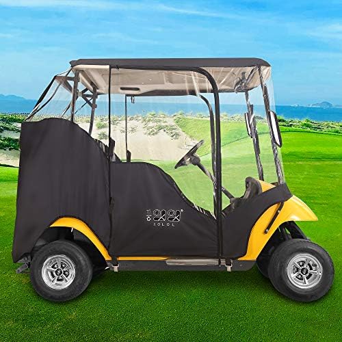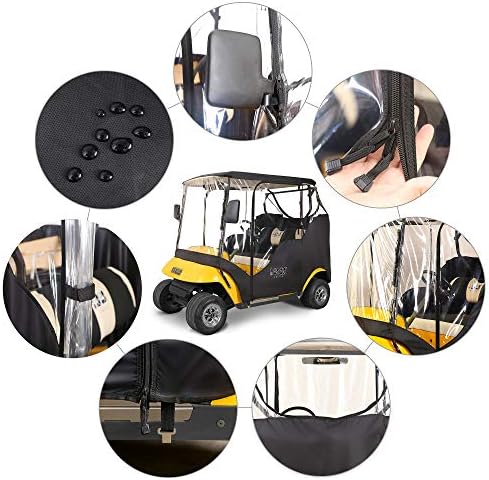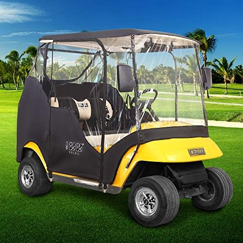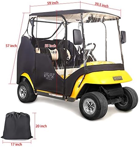 Golf Cart Enclosure 2 PASSENGER Fits EZGO TXT with Full Roof 58″ Top: This golf cart cover designed for most 2-Person EZGO TXT golf cart. As long as your golf cart roof is 148cm/58in in length, 92cm/36in in width and 148cm/58in in height. Use the high quantity material polyester, tear-resistant and UV-resistant. With PU water-proof layer inside to enhance the overall water-resistant.