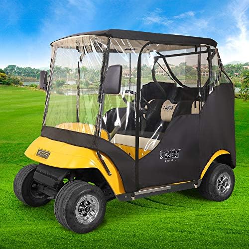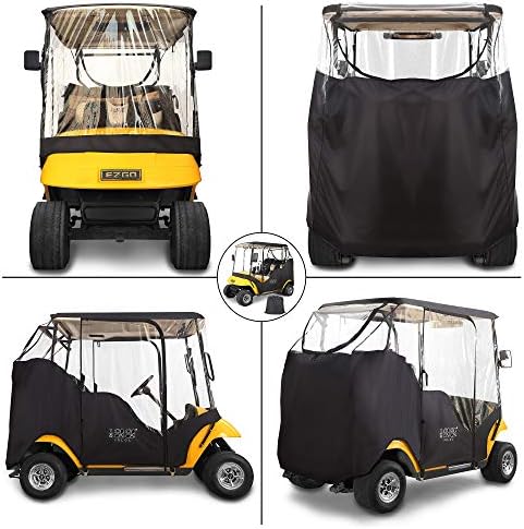 10L0L 2 Passenger Golf Cart Enclosures for EZGO TXT with Security Side Mirror Openings, Waterproof Portable Transparent Golf Cart Cover Storage Driving Enclosure – 4-Sided (Roof up to 58″ L)