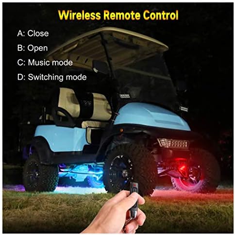 Cool Lights: Love the golf cart led lights come with a remote so you can change colors and pattern very easily. Makes a great addition to our cart and they looks super cool at night. Add a strong Christmas atmosphere for you.