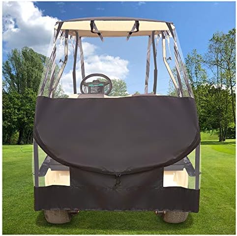 TRANSPARENT TAILLIGHT WINDOW: The back part of the golf cart cover allow for back lights to be seen which can ensure your driving safety when you are driving in the street. Besides, the Heavy duty water repellent polyester walls with clear PVC windows protection against all weather situation and provides you the best visibility.
