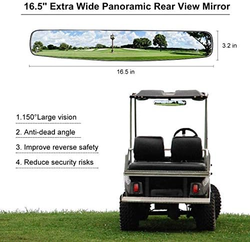 10L0L Adjustable Rotatable Golf Cart Rear View Mirror, Universal Safe 270 Rotation 16.5″ Extra Wide Rear View Convex Golf Cart Mirror for EZ Go, Club Car, Yamaha