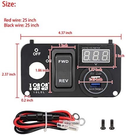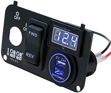 10L0L Golf Cart 3 in 1 multifunctional Integrated Panel,Dual USB Charger Socket + LED Digital Voltmeter + Forward Reverse Switch Button