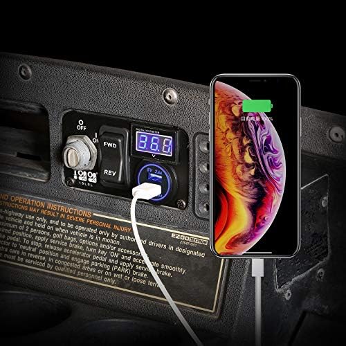 10L0L Golf Cart 3 in 1 Multifunctional Integrated Panel,12V 3.0 Fast Charge Dual USB Charger Socket & LED Digital Voltmeter & Forward Reverse Switch Button,Fit for EZGO TXT PDS Golf Carts
