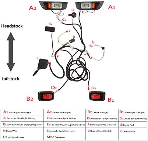 【Upgraded Version 2.0】 EZGO TXT LED daytime running light kit updated version, that allows you golf cart extend to brake, hazard, Low-beam/High-beam Lamp,horn and turn signal function.there are front turn signals as well as rear turn signals, hazard flasher, head lights and brake lights.