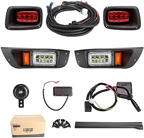 10L0L Golf Cart Deluxe LED Head/Tail Light Kits for EZGO TXT (Year 1995-2015) with Universal Deluxe Light Upgrade Kit, with Turn Signals Switch Horn Brake Lights Harness