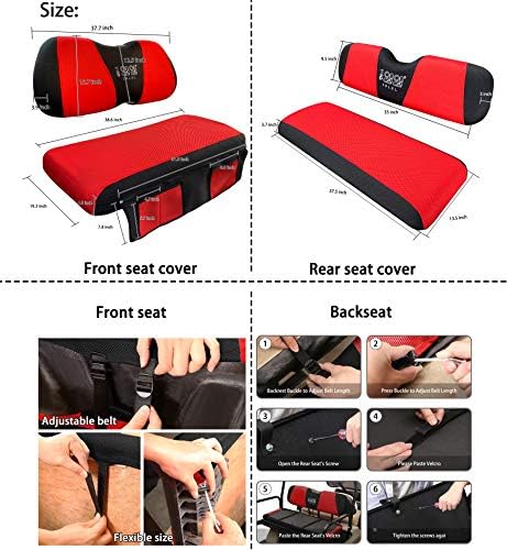 Breathable Material and Fits Like a Glove: The comfortable Polyester Mesh Cloth can help your seat cool down soon when hot in the sun and it is easy to clean and also dries very fast if caught in the rain. Easy to install and the seat covers are flexible match the Club Car DS Precedent & Yamaha perfectly.