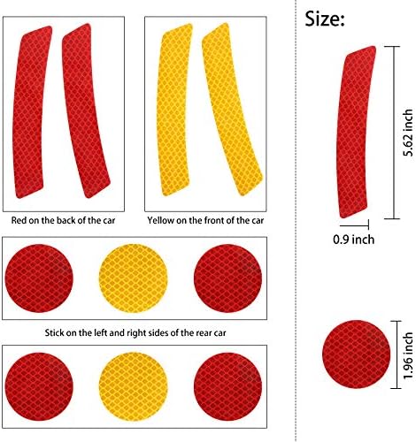 Include: yellow(2)/red(4) round reflectors 1.96″diameter + yellow/red 2 rectangle reflectors 5.62″L x 0.9″W