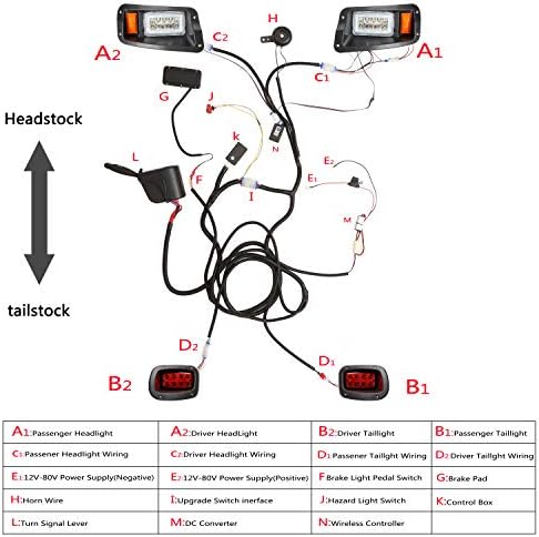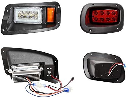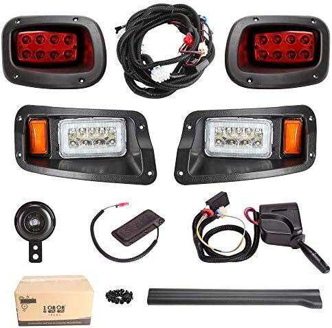 Package included : golf cart LED light kit AND golf cart universal deluxe light upgrade kit. 2x LED head lights, 2xLED tail lights, turn signals and switch, horn, brake lights, harness hardware and instruction.