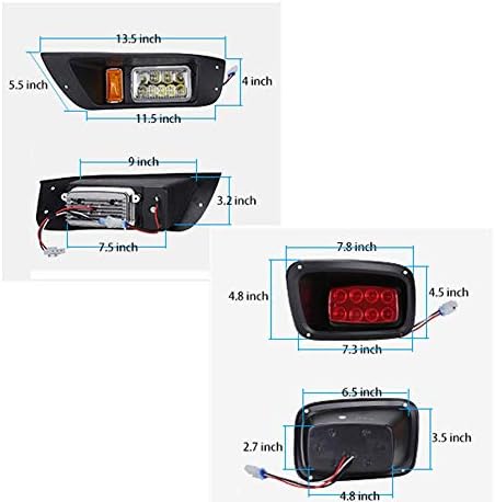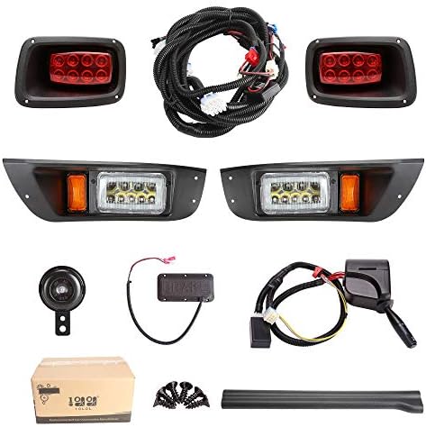 Package included : golf cart LED light kit AND golf cart universal deluxe light upgrade kit. 2x LED head lights, 2xLED tail lights, turn signals and switch, horn, brake lights, harness hardware and instruction.