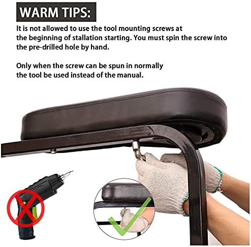 WARM TIPS:It is not allowed to use the tool mounting screws at the beginning of stallation starting. You must spin the screw into the pre-drilled hole by hand. Only when the screw can be spun in normally, the tool be used instead of the manual. Otherwise the screw maybe spin out.