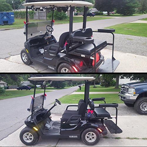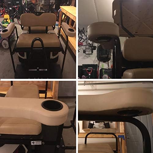 10L0L Golf Cart Rear Seat Kit Arm Rests with Cup Holder is for Club Car EZGO Yamaha, they are easily attached and looks great. Makes sitting in back more comfortable. Once installed ~ It’s very useful.