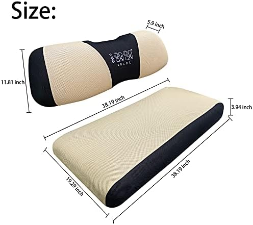 Golf cart front bench seat covers kit for Club Car DS Precedent, Yamaha models, seat bottom cover size: 38.61L*19.3W*3.94H inch, seat back cover size: 36.61L*10.43W*5.9H inch