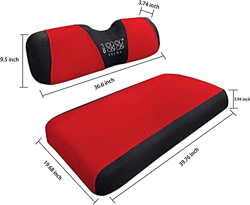 Golf cart front bench seat covers kit for EZGO TXT / RXV & Club Car DS models, seat bottom cover size: 39.76L*19.68W*3.94H inch, seat back rest cover size: 36.6L*3.74W*9.5H inch (NOT fits club car ds w/ large seat back)