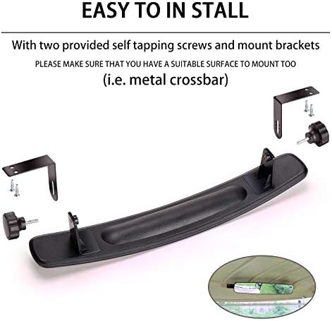 Golf Cart Rear View Mirror: Size-2.75″ x 16.5″ mirror face, Curved to see everything behind you, 16.5″ Extra Wide 150 degrees panoramic golf cart rear view mirror. Easy to installed, with two provided self tapping screws. PLEASE MAKE SURE THAT YOU HAVE A SUITABLE SURFACE TO MOUNT TOO (i.e. metal crossbar).