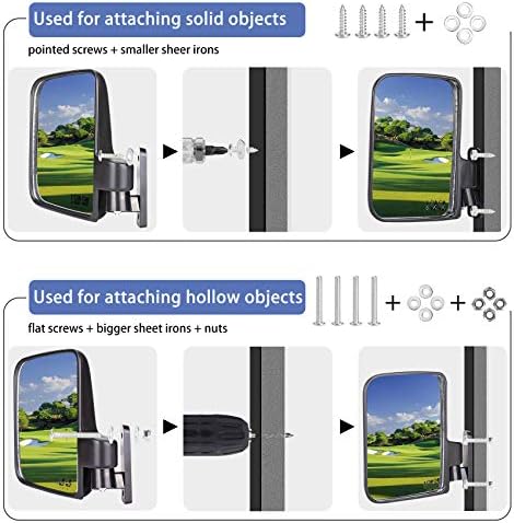 Fit: for EZ Go, Club Car, Yamaha. Package Include: You will receive 1 Side Mirror & 1 Rear View Mirror.