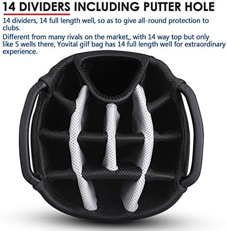 【14 Way Top with Lift Assist Handle】Superior to many bags with [14 dividers and only 5 wells], Yovital 14 Individual full length well for every club, keep things well-organized from scratch against each other. The integrated handle to the top cuff allow for easy access and maneuverability.