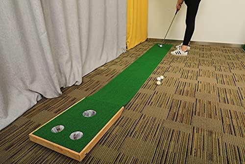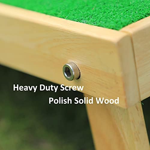 DURABLE QUALITY: This golf green is made of wood frame , simulated grass and non-slip rubber bottom. Pretty easy to set up, just unfold the turf and set up the stand, then you are ready for the putting or hitting