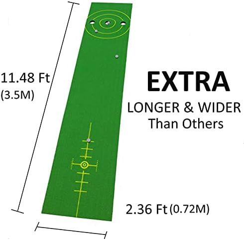 2-FNS Golf Putting Green Mat, 11.5 x 2.36Ft Extra Wide Golf Practice Mat with 4 Golf Balls & Carrying Bag for Indoor/Outdoor Games Training