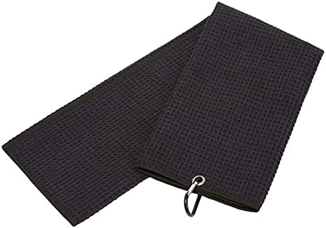 2 Packs Tri-fold Golf Towel Set Black Microfiber Fabric Waffle Pattern Towels Golf Towels for Golf Bags for Men