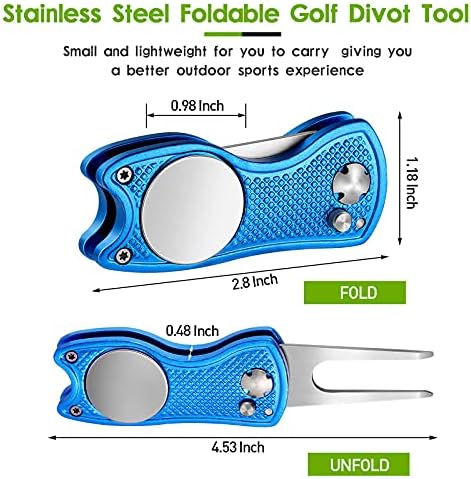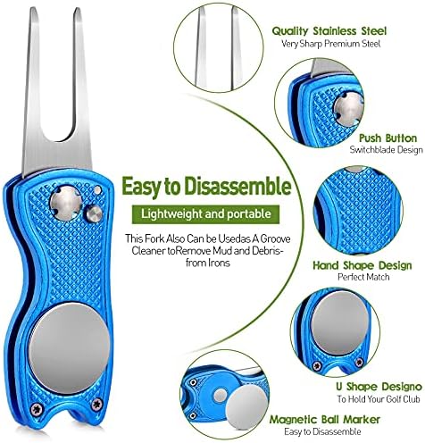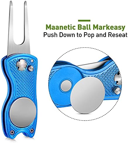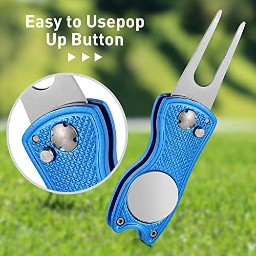 Foldable and reliable: these magnetic golf pop up button tools are foldable that you just need to press the pop-up button and the tools will pop out, when not in use, you can fold them back, reliable and convenient to use, effectively avoiding the pointed fork from scratching your pocket or fingers