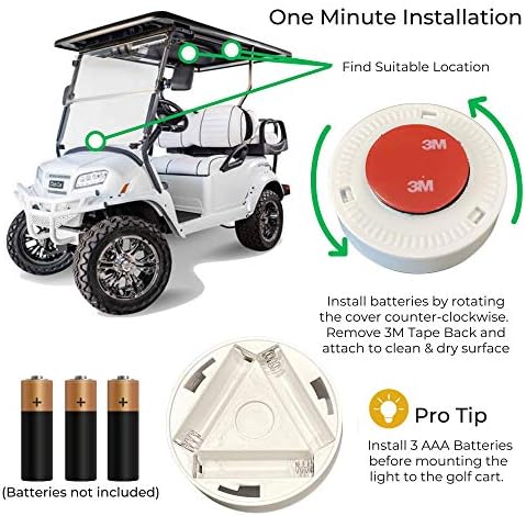 2-Pk Universal Golf Cart Roof Stick On Anywhere One Touch LED Light fits Club Cart, Onward, Precedent, EZGO, Yamaha, Garia carts, AAA Battery Powered Puck Designed for Golf cart use, Great Golf Gifts