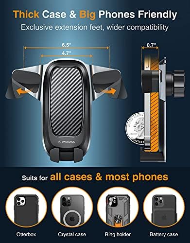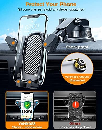 [2021 Auto Clamping Slide-in] VANMASS Car Phone Mount, 【Durable Aluminium Alloy】Handsfree Car Phone Holder Dash Windshield Vent, Compatible iPhone 12 11 Pro Max XS XR X 8 7 Galaxy S21 S20 Note 20