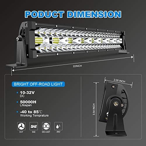 【COMBO BEAM DESIGN】New designed scientific light distribution structure, centered 170° flood LEDs surrounded by dual row 30° spot diodes, offering a perfect focused light with large-angle flood beam around to acheive both longer range and wider vision.It also provides better vertical distribution of light, greater light utilization, and reduced scatter, making it an ideal off-road light or driving light.