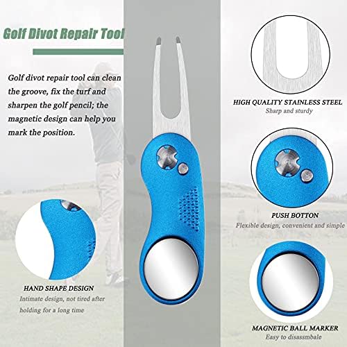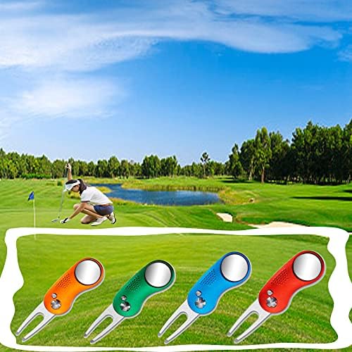?? Golf Divot Repair Tool, 4 Pcs Stainless Steel Foldable Magnetic Pop-up Button Switchblade and Detachable Golf Ball Marker (4 Colors)