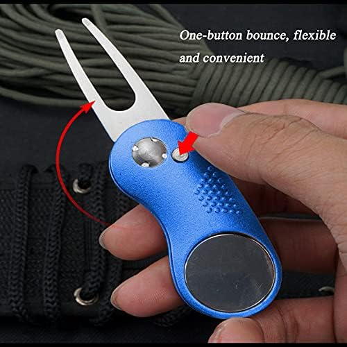 【Safe to use】The golf fork is safe to use, and it is foldable, it will not scratch your pocket or hurt your fingers. You can press the spring button to open or close the turf repair tool, the operation is easy and simple.