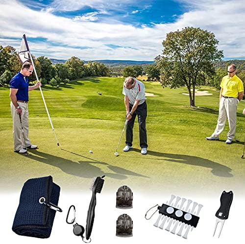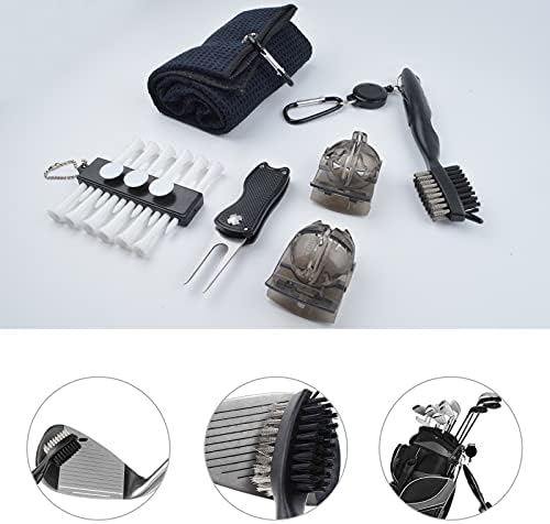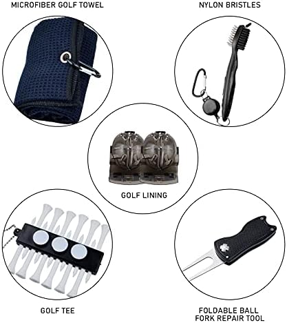 ??5 Pack Golf Club Cleaning Kit – Golf Towel, Golf Club Brush, Foldable Repair Tool with Ball Marker, Golf Ball Marker and Golf Tee Holder – Golf Accessories Golf Tool