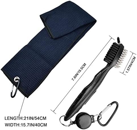 ⛳【Golf Club Cleaning Kit】- Everything plus more to keep your clubs and spikes clean. Retractable Club Brush with Brass bristles for cleaning irons. Soft Nylon bristles for cleaning woods. Sharp Spike for cleaning golf shoes & grooves.