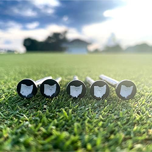 The perfect way to add style to your game, these 2 and 3/4 inch golf tees come in packages of 50 and are designed with the state of Ohio outline and name. Perfect for any Ohio golf enthusiast.