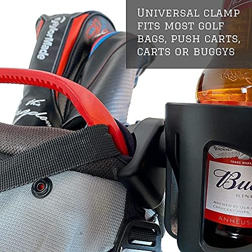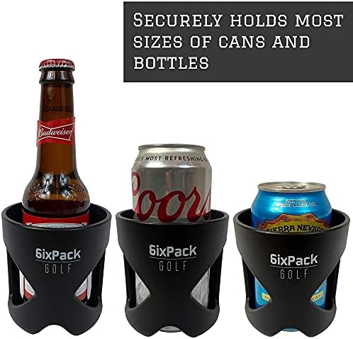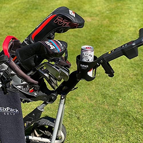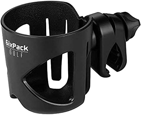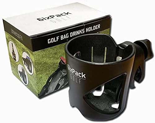 6ixPack Golf | Golf Bag Drink Holder, Golf Accessories for Men. Universal Clamp to Fit Golf Bags, Carts, Trolleys and Buggies. Cup Holder Fits All Types of Bottles, Cans, Coffee Cup Holder. Golf Gifts