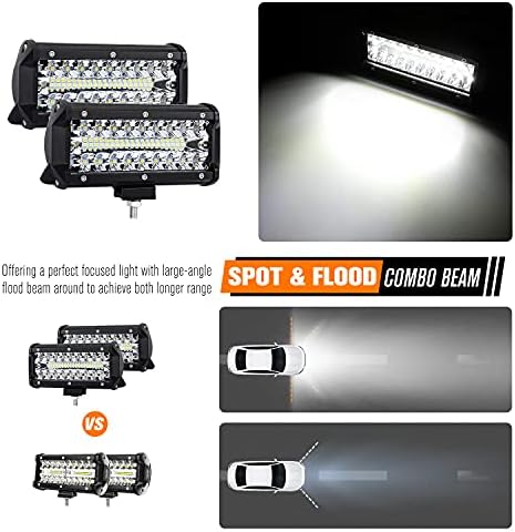 7 Inch LED Pods Spot Flood Combo Beam Liteway 24000 LM Triple Row Light Bar Off Road Driving Led Work Lights for UTV ATV Jeep Truck Boat Waterproof 2 Pack LED Light Bars