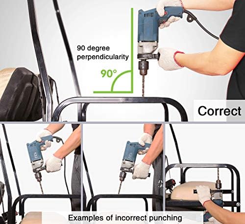 Drill holes with a 5/16” drill bit on the marked spot. Please make sure the drill bit is perpendicular to the bar.