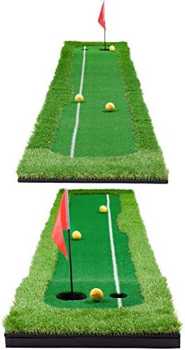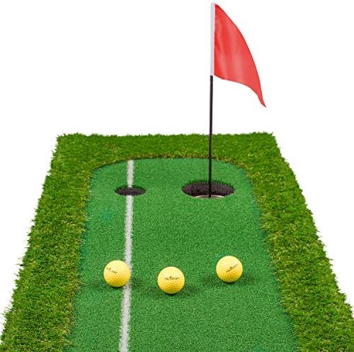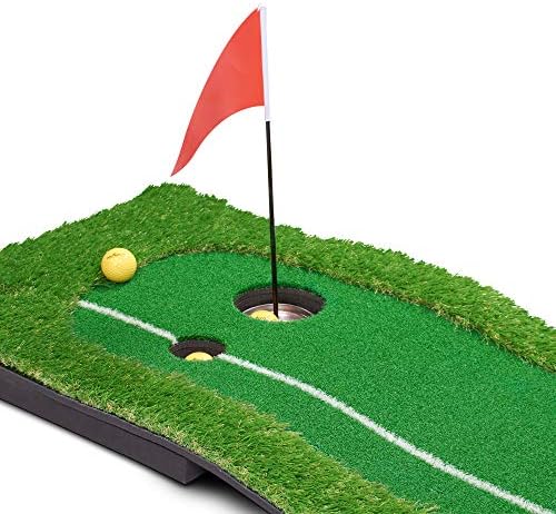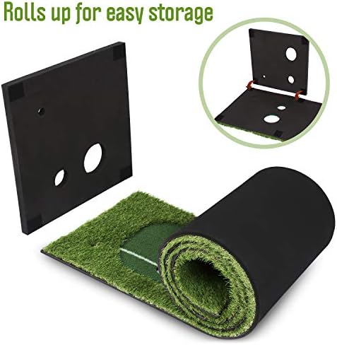 REALISTIC GOLF MAT — Featuring synthetic turf that simulates real grass and an elevated golf hole area, our indoor golf putting mat gives you the feel of playing on a real life-like golf-course!