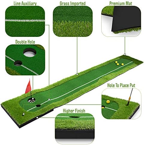 HIGH-QUALITY ARTIFICIAL GREEN — Beautiful putting practice mat is made with premium quality PP synthetic grass, while flexible build makes it easy to roll and put away when not in use!
