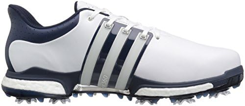 Spiked golf shoe. Featuring a premium leather upper with climaproof technology for a rich look, soft, comfortable feel and long-lasting protection and durability, the TOUR360 boost helps you perform at your best while maintaining a sharp look on the course. It also boasts superior cushioning and comfort from its full-length boost midsole foam, a new heel shape that follows the natural contour of the foot, and re-engineered 360WRAP with lighter and more flexible saddle material. Plus, the advanced dual-density 10-cleat puremotion TPU outsole with CenTraXion and thintech cleats offer improved stability and grip where they’re needed most. Along with this, the new TORSION TUNNEL gives you independent flexibility and control between the heel and forefoot (with enhanced arch support and improved green friendliness), the fitfoam GEO collar and tongue foam deliver enhanced cushioning and comfort, and our etc. lining material reduces friction, moisture and heat for superior comfort and performance.