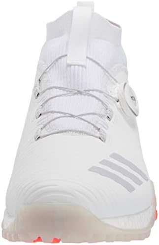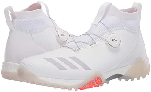 These men’s golf shoes feature a premium adidas primeknit upper with an enhanced collar and the l6 boa fit system for a snug, precise fit. Built with a responsive boost midsole, they’re designed with rain.Rdy that blocks the wind and rain while keeping your feet dry. A rubber, spike less chaos traxion outsole delivers exceptional grip and lightweight traction.