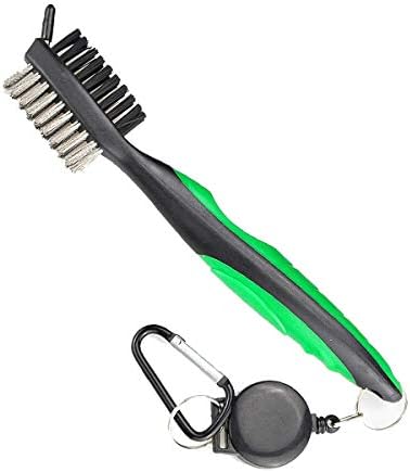 RETRACTABLE GOLF BRUSH: Two-Sided Brush with Strong Bristles & Groove Cleaner to Remove Dirt and Grass from Your Clubs/Spikes. 2 Ft Retractable zip-line can be attached to the bag and easy for reach and use during the play