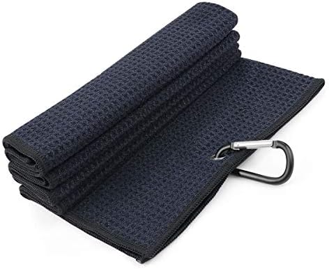 MICROFIBER TOWEL: Highly Absorbent and Quick Drying with waffle design. Perfect Size (16’’ x 24’’) to Keep in Your Back Pocket or Clip to Your Golf Bag, with a clip that conveniently attaches to your golf bag