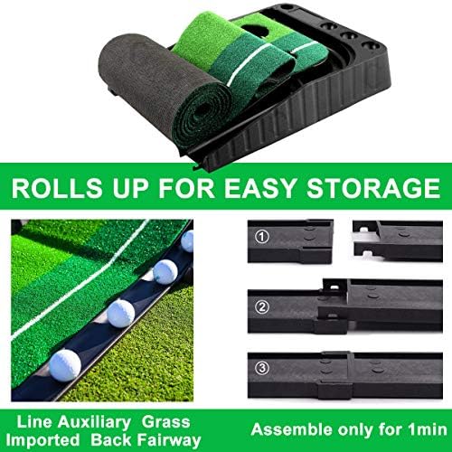 Aliennana Golf Putting Green with Auto Ball Return,Golf Practice Mat Training Aid,Extra Long 9.84Feet,Pro Outdoor Indoor Putting Green with 4 Bonus Balls Foldable (ASD)