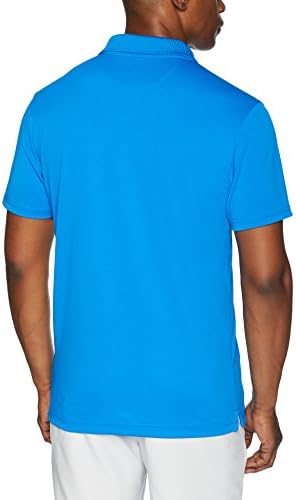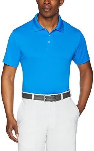 An Amazon brand – This slim-fit golf polo shirt is crafted from a quick-dry moisture-wicking knit and features three button placket and open-bottom hem