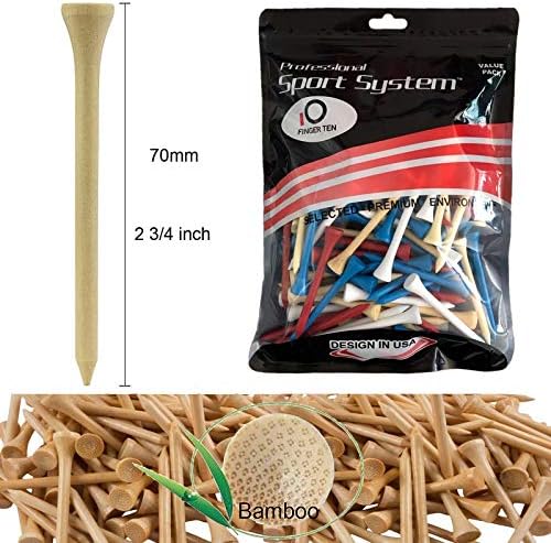 Amy Sport Golf Tees 2 3/4 inch 3 1/4 Bamboo Tee Bulk Stronger Than Wood Value 60/200 Pack Color Red Blue White Wood Mixed, 70mm Long Reduce Friction for Men Women Kids