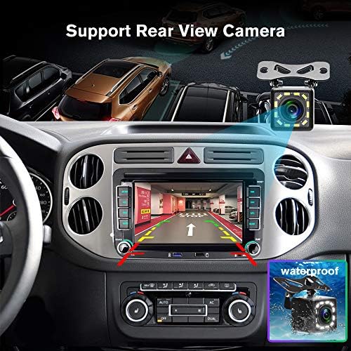 【Reversing Camera Input】The car radio with a free 12 LEDs backup camera, after connected it, when you pull the reverse gear, the device will show rear view image automatically, make your daily reversing safer and easier
