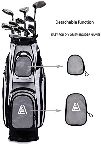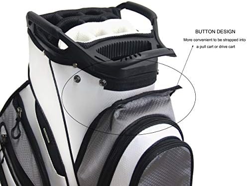 【EXTRA STORAGE SPACE】13 pockets – including 2 pockets on the front can be removed for embroidery personalization, 2 full length for Apparel, 2 Waterproof velour-lined valuables pockets,2 additional side pockets for shoes, 2 mesh pockets, and 1 ball pocket(can hold 24 golf balls), 1 insulated cooler pocket with drains(can hold 8 bottles of 12 oz cans),1 Range finder pocket. Plenty of pockets for all your gear and golf accessories