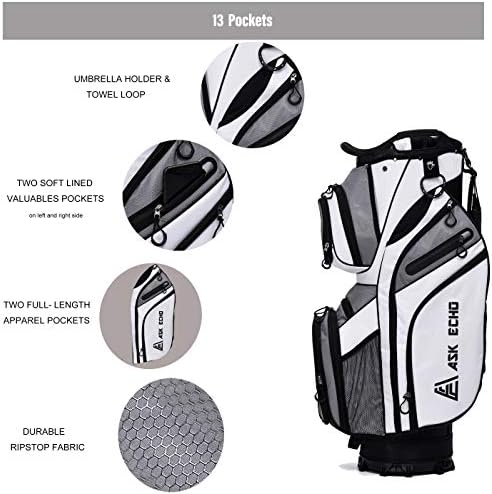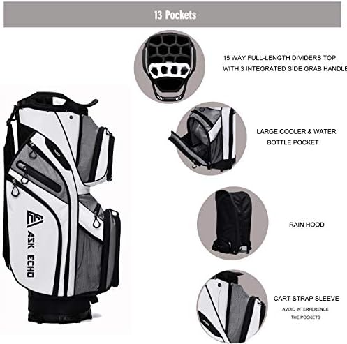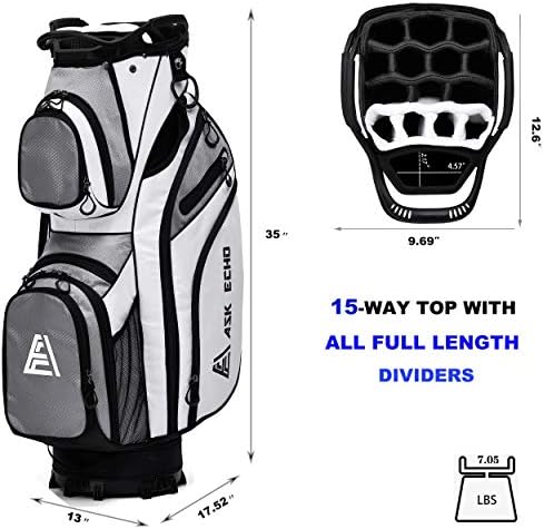 ASK ECHO Premium Golf Cart Bag with 14 Way Full Length Dividers Plus Putter Tube