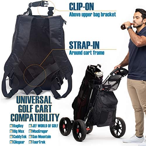 Universal Golf Cart Compatibility | Fits in Golf Cart Storage Basket | Straps onto Golf Push Carts or Pull Carts
